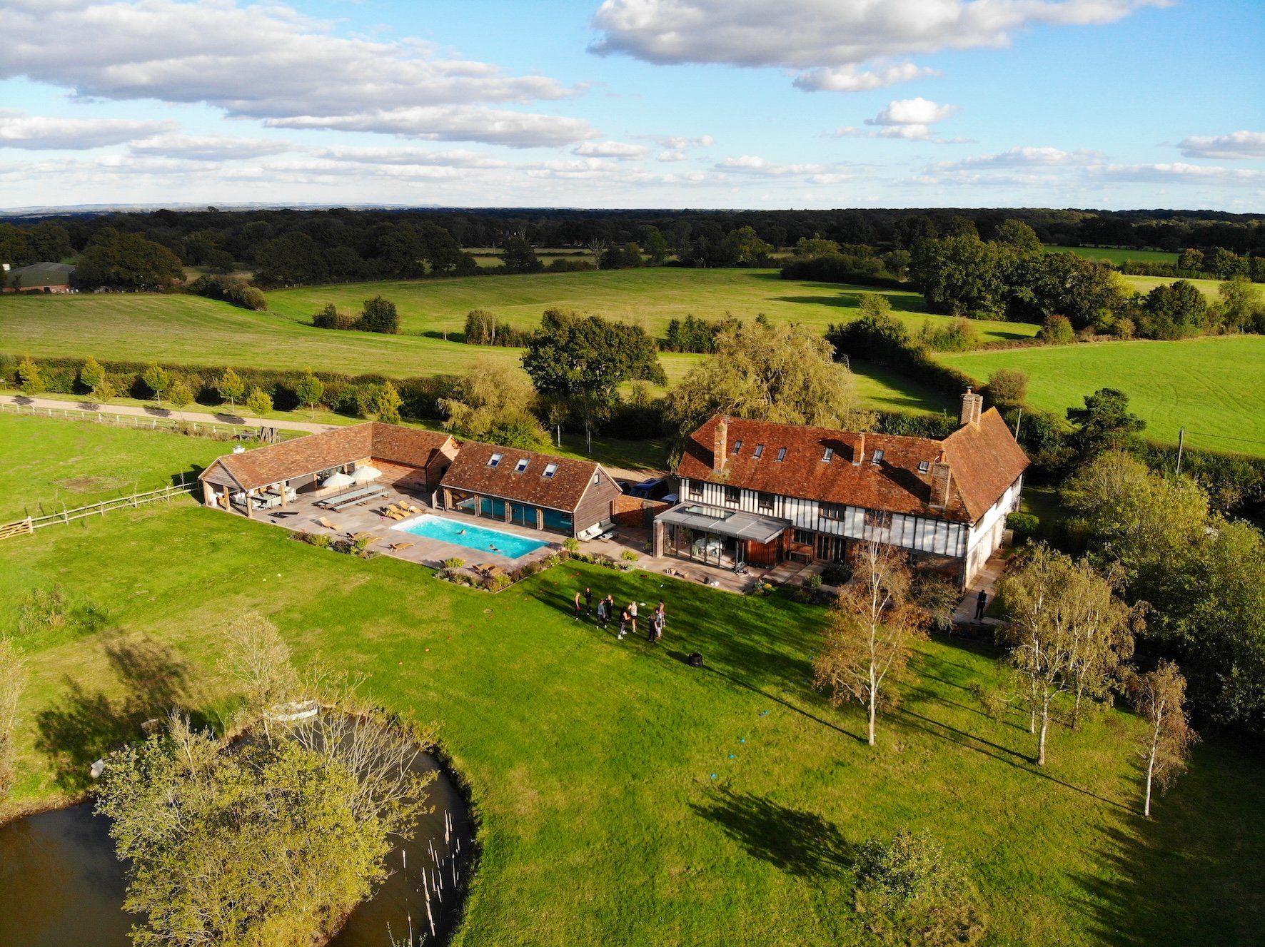 - Cosy scandi-chic space with views across the swimming pool, lake & fields beyond